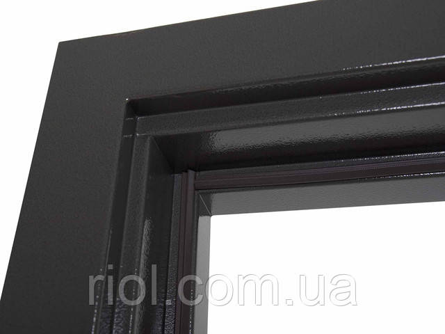 Дверне полотно укомплектовано МДФ накладкою товщиною 10 мм всередині, а також листом металу 1,5 мм. Ззовні використовується лист металу пофарбований молотковою краскою. Завдяки чому двері являються чудовим вуличним варіантом.
