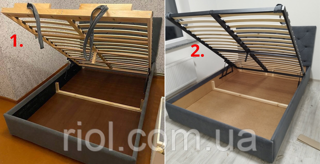 Зверніть увагу, що в комплектації з підйомним механізмом ліжко буде з великим коробом для зберігання білизни, це дуже зручно, фактично у Вас під ліжком буде ціла шафа.