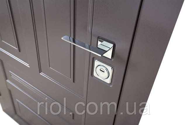 Для даної моделі використовується грецька ручка «Ilavio 2406» в хромовому кольорі, а також комплект броненакладок. Дана фурнітура виготовлена з високоякісних матеріалів в оригінальному хромовому кольорі і являється ексклюзивною пропозицією для клієнтів нашої компанії, вона використовується за все в декількох моделях.